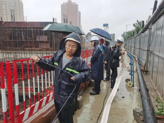 中國一冶安陽高新區棚戶區改造項目迅速啟動應急預案,組織項目部全體人員連夜搶險,派遣搶險隊對現場進行道路加固、路面清淤。同時,項目領導班子和現場負責人24小時值班,帶頭開展巡查,發現問題第一時間報告,進一步夯實防汛責任。防汛期間,項目部累計投入2000余個防洪沙袋、12臺水泵、2臺180千瓦防汛備用發電機。在項目部全體人員的共同努力下,施工現場積水迅速排出,有效保證了工程質量,筑牢了安全防線。
