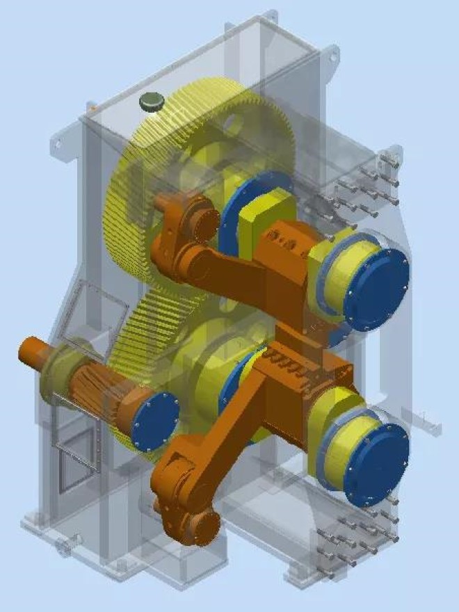 1)雙支撐結構,與懸臂結構相比,改善曲軸和箱體的受力情況,保證剪切時的穩定性;
