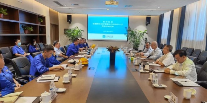 劉利華一行在認真參觀調研產品展廳、技術中心、精品棒材、電爐煉鋼、水處理中心等車間和單位后,與河鋼集團副總經理王新東、石鋼公司董事長黃永建、石鋼總經理張海寧等進行了座談,并就廢鋼采購、用電情況、綠色低碳、兩化融合、智能制造、鋼廠搬遷等方面進行了深入交流。駱鐵軍對當前我國鋼鐵行業運行、短流程電爐鋼發展、石鋼退城搬遷等做了情況介紹。