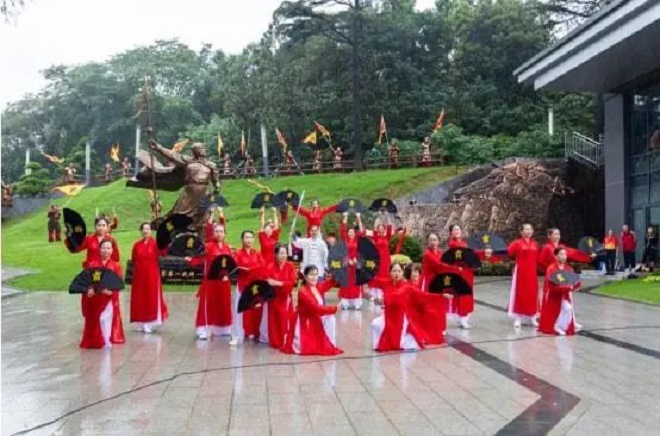 南鋼職工為霸王山紀念館專門編排了舞蹈武術,通背拳第六代傳人、南京市武協副秘書長、江北新區武協常務副秘書長厲恩寶現場武術表演《通背五行劍》。儀式結束后,來賓們饒有興趣地參觀了霸王山紀念館。