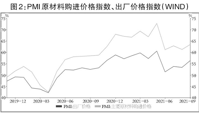 9月制造業PMI價格指數繼續攀升,原材料購進價格指數環比上行2.2個百分點至63.5%;出廠價格指數環比上行3.0個百分點至56.4%,兩個價格指數均升至近4個月高點,上游對下游行業的成本壓力仍然較大。原材料庫存指數環比上行0.5個百分點至48.2%,產成品庫存指數環比下行0.5個百分點至47.2%,產成品庫存下滑,原材料庫存回升。