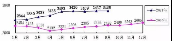 廢鋼9月份加權平均采購成本為3438.07元/噸,環比升高1.15元/噸,升幅為0.03%。1-9月累計平均采購成本為3235.17元/噸,同比升高883.03元/噸,升幅為37.54%。