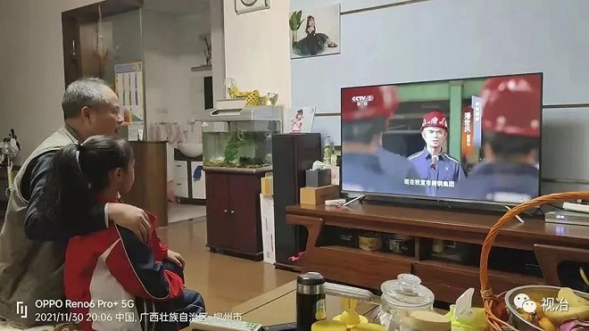 ▲河鋼唐鋼職工賈智軒家觀看紀錄片