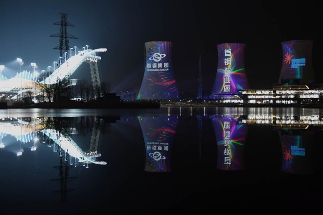 2月2日17時57分,首鋼園廠東門廣場開始北京冬奧會火炬?zhèn)鬟f。