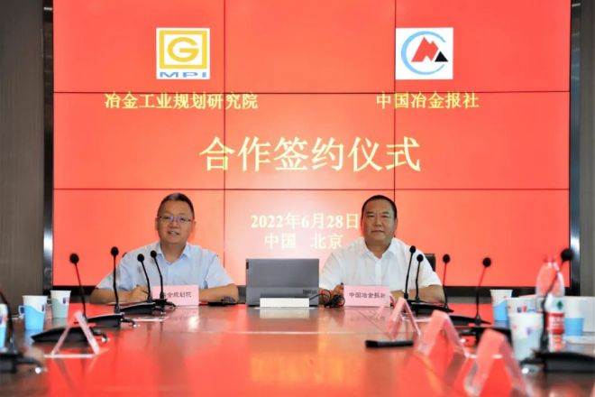 6月28日,冶金工業規劃研究院(以下簡稱冶金規劃院)與中國冶金報社就進一步深化戰略合作簽訂協議。未來,雙方將基于多年友好合作關系和各自獨特優勢,深化合作內容、拓展合作領域、創新合作模式,強強聯合,共強鋼鐵,用規劃和文化的力量共同為鋼鐵行業、鋼鐵企業高質量發展貢獻力量。