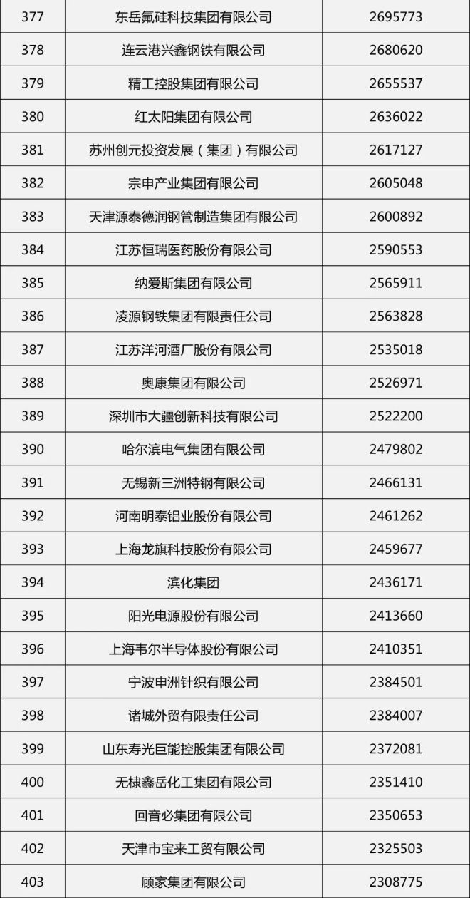 制造業500強全名單如下——