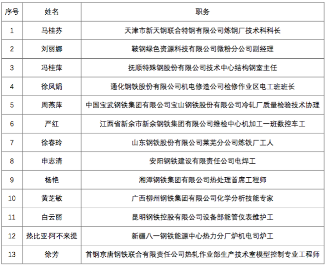 據(jù)不完全統(tǒng)計,鋼鐵行業(yè)11個集團榮獲全國五一巾幗標兵崗,13位職工榮獲全國五一巾幗標兵,具體名單如下: