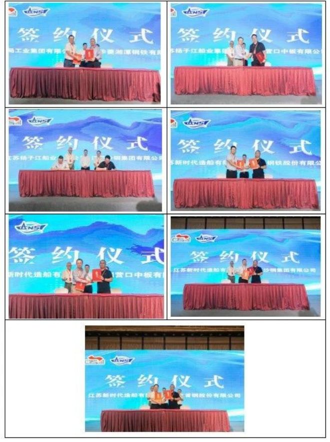 會議舉行了鋼企—船企長期供貨協議簽約儀式。在駱鐵軍、吳強、何慶偉的見證下,中國船舶集團物資有限公司等9家船企同鞍鋼股份有限公司等9家鋼企簽訂了長期采購協議。今年會議共促成23場簽約,較第一屆會議增加了13場,兩行業合作得到進一步加強。