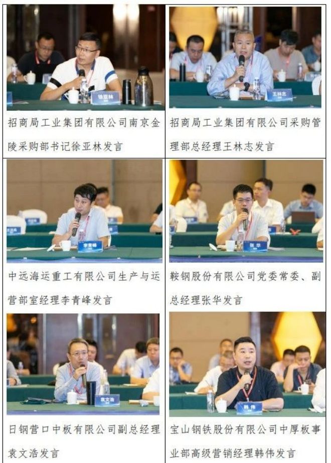 鋼協黨委常委、副會長駱鐵軍,船協常務副會長吳強,營口市人民政府市委常委、副市長何慶偉,上海期貨交易所副總經理張銘,日鋼營口中板總經理鳳維富到會講話或致辭。上海鋼聯電子商務股份有限公司副總裁劉靜等嘉賓出席會議。鋼協總經濟師王穎生、船協副秘書長譚乃芬主持會議。