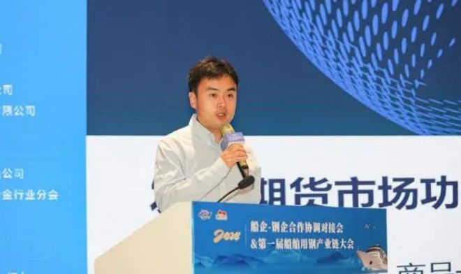 在上午的會議上,煙臺市副市長韓耀東致歡迎詞;中國鋼鐵工業(yè)協(xié)會(下稱鋼協(xié))黨委常委、副會長駱鐵軍,中國船舶工業(yè)行業(yè)協(xié)會(下稱船協(xié))常務(wù)副會長陳民俊,工信部原材料工業(yè)司副處長時一鈞,上海期貨交易所副總經(jīng)理張銘發(fā)表講話。船協(xié)副秘書長譚乃芬、鋼協(xié)副秘書長石洪衛(wèi)分別主持會議各環(huán)節(jié)。