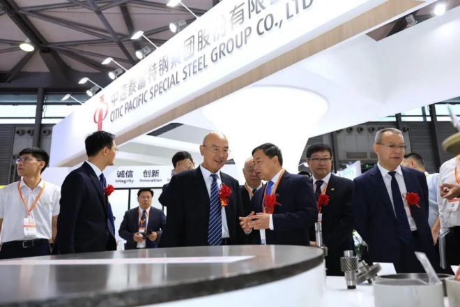 圖為9月3日,領導和嘉賓參觀中國國際冶金工業展覽會上的中信泰富特鋼展臺。