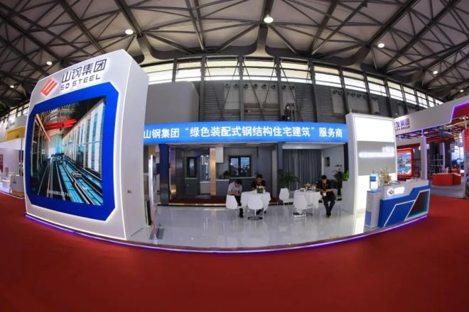 圖為山鋼集團在展臺上搭建的鋼結構住宅樣板間。