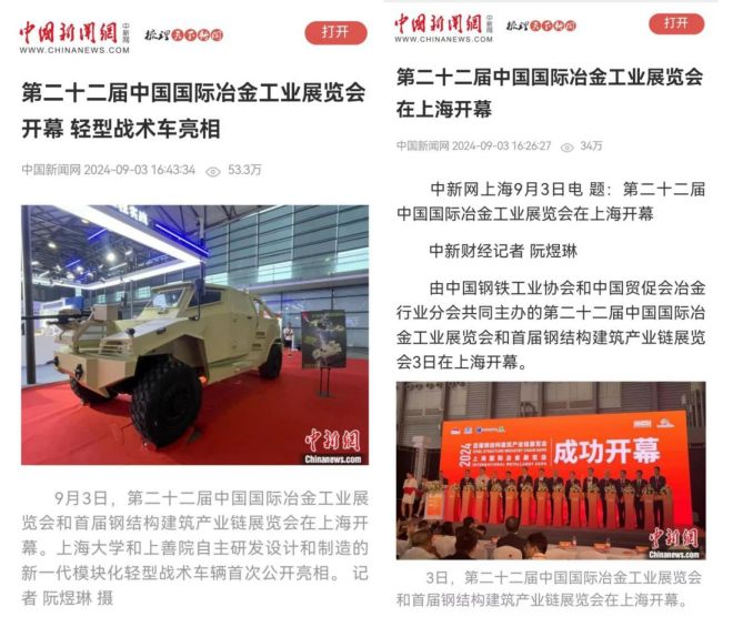 圖為上海大學展臺展出的特種鋼車輛吸引了參觀者紛紛駐足拍照。
