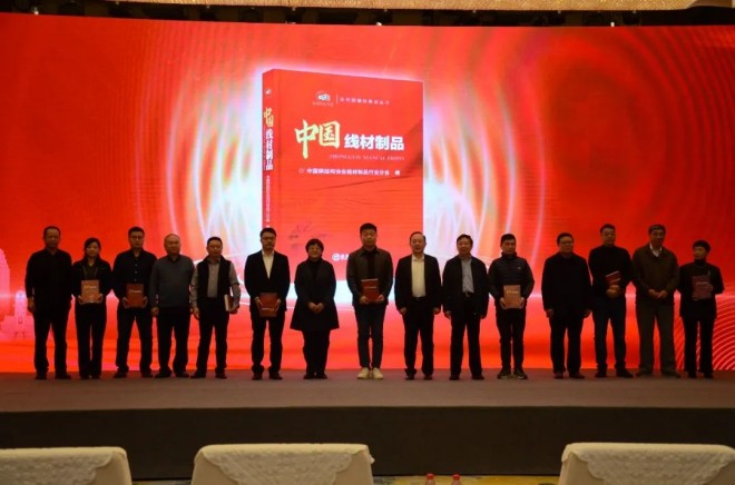 12月17日,在中國鋼結構協會線材制品行業分會(下稱制品分會)八屆四次會員代表大會暨2024年年會上,隨著中國鋼鐵工業協會副總工程師黃導,冶金工業出版社黨委副書記、副社長(主持工作)、總編輯陳琢,江蘇省鋼鐵行業協會副會長兼秘書長陳洪冰,制品分會2024年輪值理事長顧其林(江蘇狼山鋼繩股份有限公司董事長、黨委書記)、2025年輪值理事長董東(法爾勝泓昇集團副總裁)、執行理事長劉喆、顧問徐寅(鋼協原發展與科技環保部副主任)共同按下啟動鍵,《中國線材制品》新書正式發布。