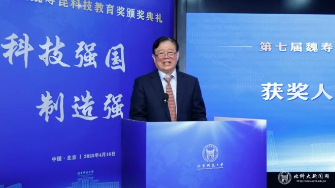 4月16日,第七屆魏壽昆科技教育獎頒獎典禮在天工大廈第六會議室召開。中國工程院院士干勇獲得第七屆魏壽昆冶金獎,寶武集團教授級高級工程師劉穎昊和北京科技大學教授焦樹強獲得第七屆魏壽昆冶金青年獎。