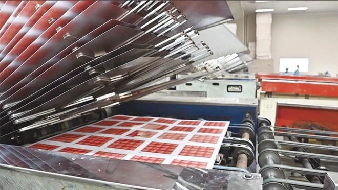 2024年1月15日,廣東東莞的“蟬翼鋼”制龍年生肖郵票的印刷現(xiàn)場,這里正進行著彩印的最后一道工序——涂保護油。“這版印刷的油墨有些不均勻,是不是底板位置偏移了?”來自首鋼京唐的研發(fā)人員拿著新鮮“出爐”的鋼制郵票,將樣品的圖案、顏色、大小同設計參數(shù)反復比對,協(xié)助該印刷廠解決了重影、油墨不均等問題,確保用“蟬翼鋼”制作的龍年生肖郵票如期發(fā)行。
