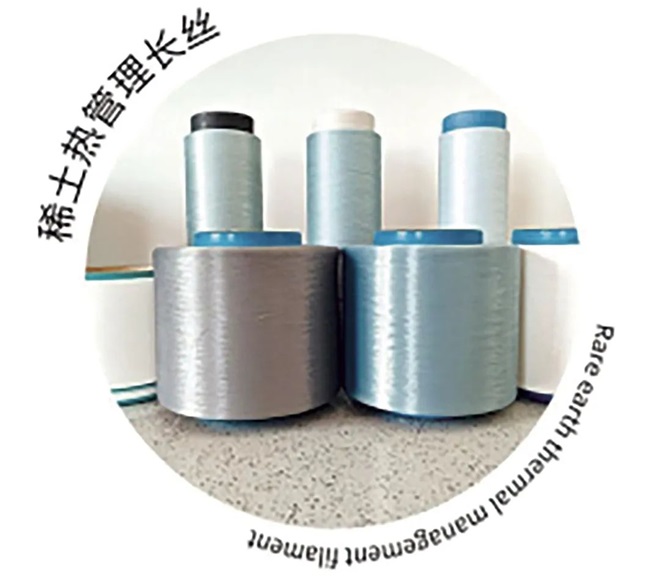在包鋼稀土研究院天津分院與中紡院的聯(lián)合研發(fā)實驗室內(nèi),一束束“稀貝絲”在紡紗機上輕盈舞動。這些纖維中嵌入稀土納米顆粒,可吸收陽光中的紅外線并轉化為熱能。安踏最新款“熾熱科技”羽絨服便采用了稀貝絲?青曜印花面料,讓冬季服裝厚度減少30%,保暖性卻提升50%。另一款稀貝絲?冰逸稀土冰爽防護面料,具有瞬時涼感、隔熱、防紫外、無融滴、遮熱和抗菌效果。如今,該院已與下游紗線廠簽訂了價值40萬余元的該種面料訂單,已應用到包鋼夏季工服上,化身 “降溫神器”。