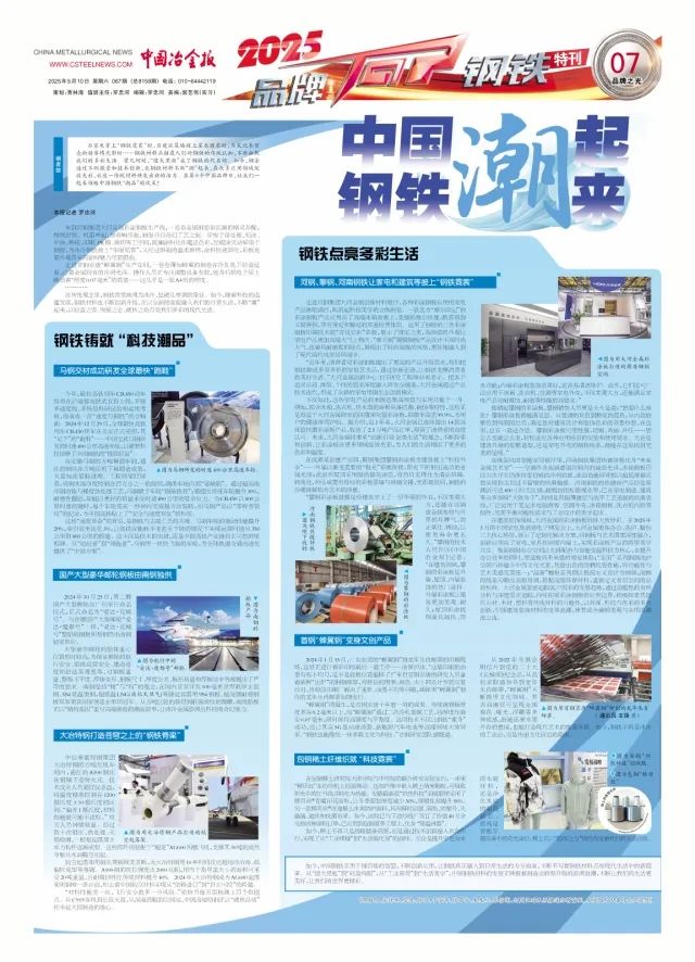 如今,中國鋼鐵正用千錘百煉的智慧,不斷創(chuàng)新應用,讓鋼鐵真正融入到日常生活的方方面面,不斷書寫著鋼鐵材料點亮現(xiàn)代生活中的新篇章。從“傻大黑粗”到“輕盈絢麗”,從“工業(yè)筋骨”到“生活美學”,中國鋼鐵材料的發(fā)展正映照著制造業(yè)轉型升級的澎湃浪潮,不斷讓我們的生活更美好,讓我們的世界更精彩。