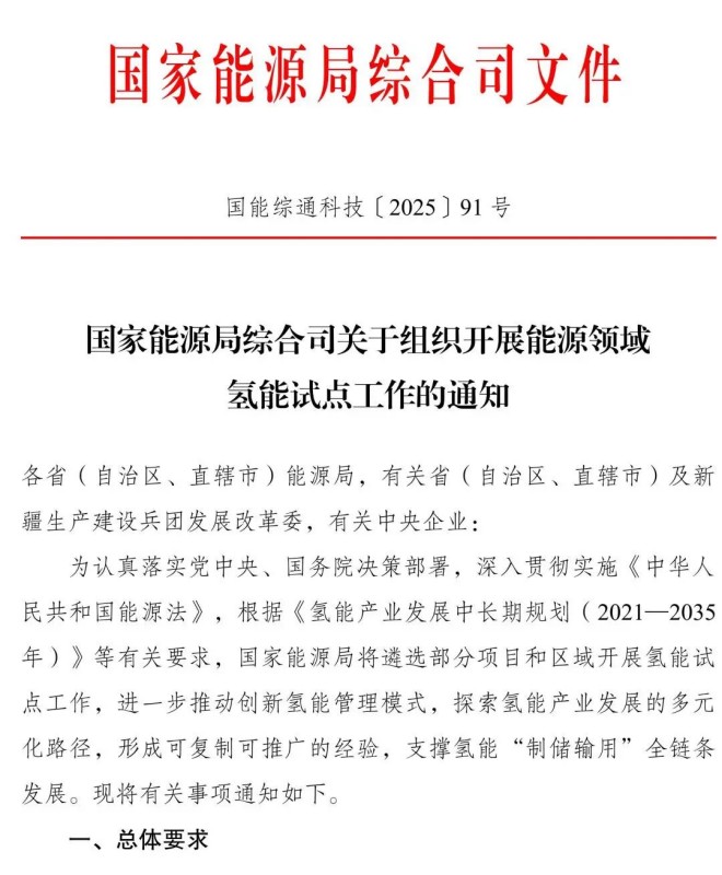 近日,國家能源局綜合司發布關于組織開展能源領域氫能試點工作的通知(以下簡稱“通知”)。