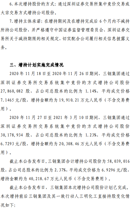 三鋼閩光:關于控股股東增持公司股份計劃實施完畢的公告