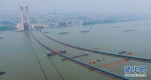 五峰山長江大橋是我國第一座公鐵兩用懸索橋,也是世界上荷載最重、行車速度最快的公鐵兩用懸索橋,被業(yè)內(nèi)專家贊譽為“高速鐵路時代橋梁千米跨越的代表”。整個大橋上部結(jié)構(gòu)施工尤為關(guān)鍵,全橋設(shè)計2根主纜,上下游各一根,直徑1.3米。每根主纜有352根索股,每根索股由127根直徑5.5毫米、抗拉強度1860兆帕的鍍鋅鋁高強度鋼絲組成,單根主纜的拉力高達9萬噸,足以吊起1.5艘滿載的“遼寧號”航空母艦。