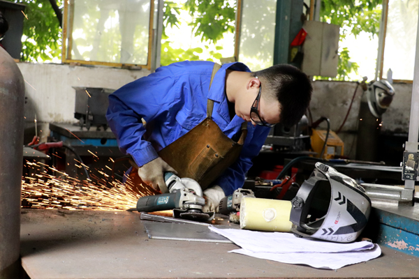 圖為第46屆世技賽建筑金屬構造項目集訓選手正在中國十九冶攀枝花技師學院緊張訓練。