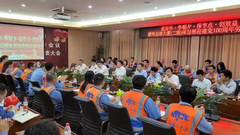 3月29日,中國二十冶集團廣東公司橫琴總部大廈(二期)項目部,召開“迎百年 爭朝夕 保節點 創效益”大干100天競賽活動。