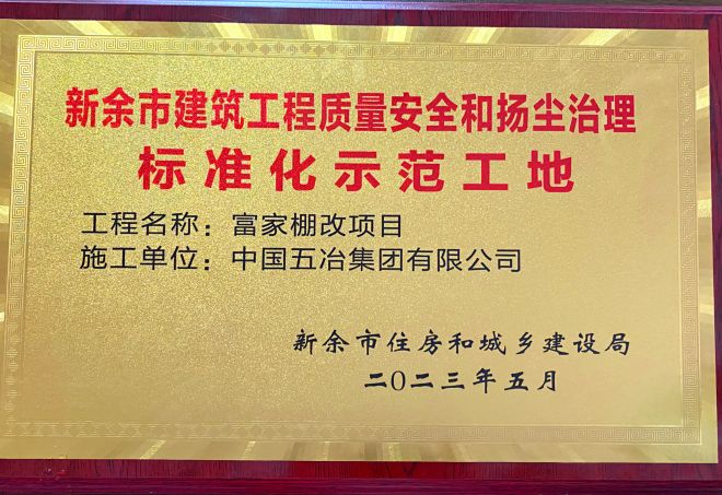5月9日,新余市住房和城鄉(xiāng)建設(shè)局組織召開“2023年度第一批建筑施工質(zhì)量安全和揚塵治理標(biāo)準(zhǔn)化示范工地觀摩會”。會上,中國五冶新余富家棚改項目被授予“新余市建筑工程質(zhì)量安全和揚塵治理標(biāo)準(zhǔn)化示范工地”榮譽獎牌。