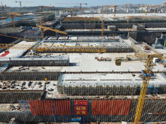 2023年5月31日,經(jīng)過101天的鏖戰(zhàn),由中國(guó)五冶集團(tuán)有限公司承建的廈門天馬光電子有限公司第8.6代新型顯示面板生產(chǎn)線項(xiàng)目總包三標(biāo)段項(xiàng)目5號(hào)綜合動(dòng)力站主體結(jié)構(gòu)順利實(shí)現(xiàn)封頂,比合同工期整整提前45天。