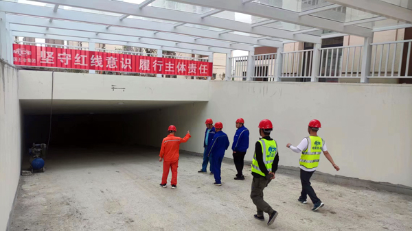 圖為中國五冶濟寧五里營河北(一期)項目部在“安全生產(chǎn)月”期間進行安全排查。 (陳賓墨 攝)